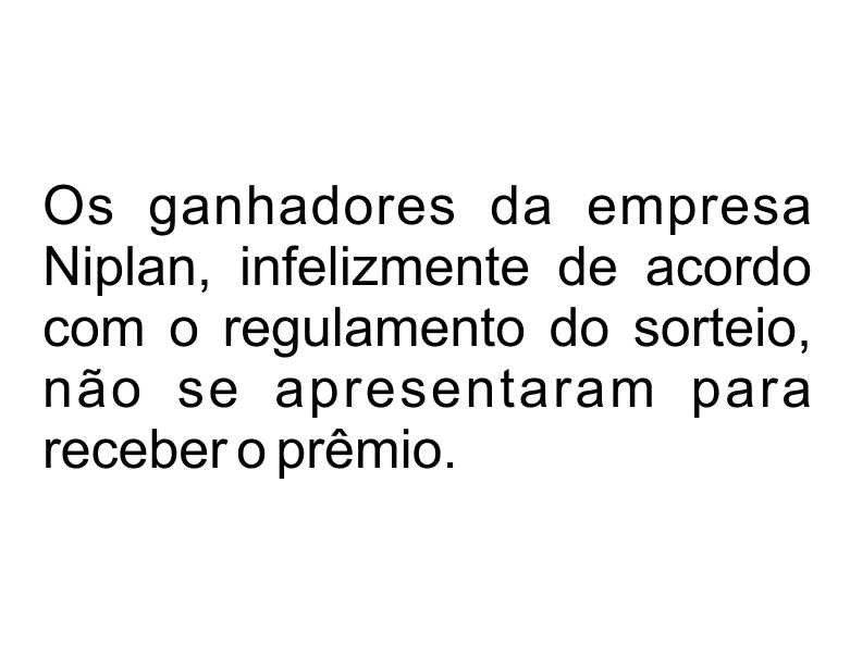 Os ganhadores das empresas Contato Engenharia e M. Roscoe, infelizmente de acordo com o regulamento do sorteio, não se apresentaram para receberem os prêmios.